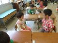 今週、各クラスごとに絵の具の使い方講習会がありました。絵の具を使うことを楽しみに.....