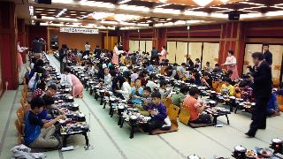 いよいよ夕食です。 お疲れ様でした。 大人数の夕食は圧巻ですね。きっとおなか.....